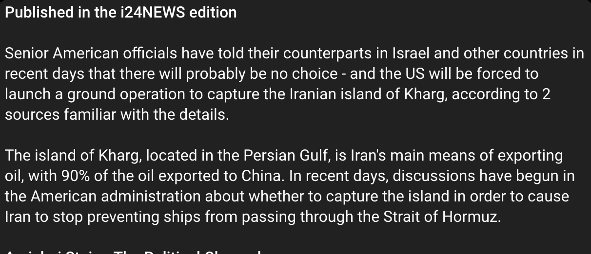 Some believe that Trump’s potential coming attacks against Iran’s energy grid is to be a destabilizing and distracting effect meant to allow US Marines and 82nd Airborne to take Kharg Island, or other Iranian islands. “Senior official” sources continue claiming that the boots-on-ground operation is still highly probable: