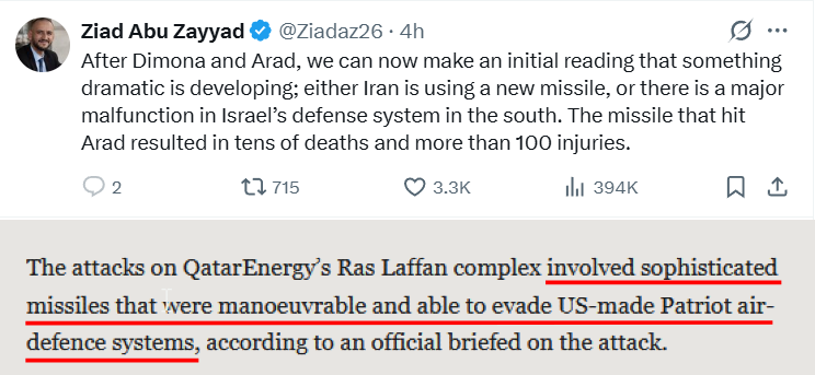 There are now reports that Iran’s recent successful attacks involved newer more “sophisticated”—as per Financial Times—missiles which evaded US Patriots: