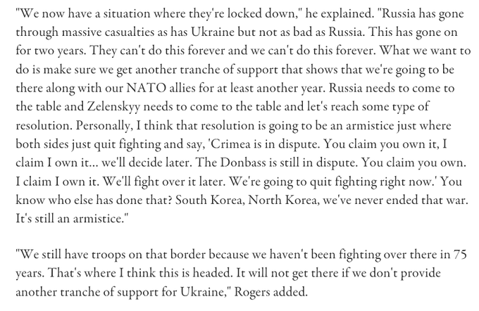 Another troubling example of just how deluded and out of touch Western leaders are, we have Trump’s first pick for Secretary of Defense, Mike Rogers. Though Trump changed his mind and nominated Hegseth afterwards, it still shows the utter detachment of top elites, particularly given that Rogers was Chair of Congress’s Intelligence Committee, and is thus supposed to be one of the most informed members of Congress. Yet look how easily he thinks Russia would take the bait to end the war on unfavorable terms: