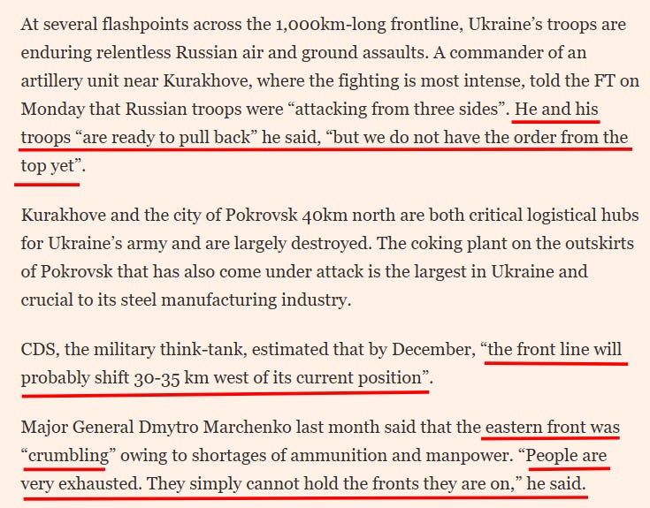 The FT article however claims Ukraine can “prove” its mettle to allies by holding strong until messiah Trump comes to the rescue: