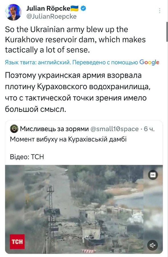 Ukraine blew the Kurakhove dam at the west end of the reservoir, which has reportedly flooded and slowing Russian troops for now. At first Russia was blamed as usual, until even the worst pro-UA propagandists wisened up: