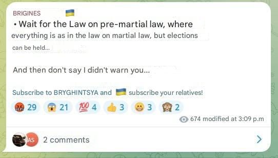 The Verkhovna Rada says that the OP is preparing a new law on such a martial law so that elections can be held and Zelensky legitimized☝🏻