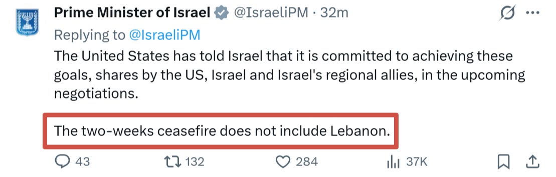 That said, it leaves the question of what will happen after the deadline passes, or when Israel inevitably violates the truce. We know to a large extent Trump’s threats of “total destruction” of Iran were bluffs for two reasons:
