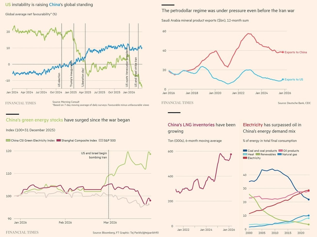 Finally, the conflict boosts China’s image as a more stable partner relative to the US across the developed and developing world. Just last week Chinese premier Li Qiang convened more than 70 global chief executives at the China Development Forum to tout the country’s reliability and supply chains. China’s favourability compared to the US is indeed rising, exclusive survey data from Morning Consult shows.
