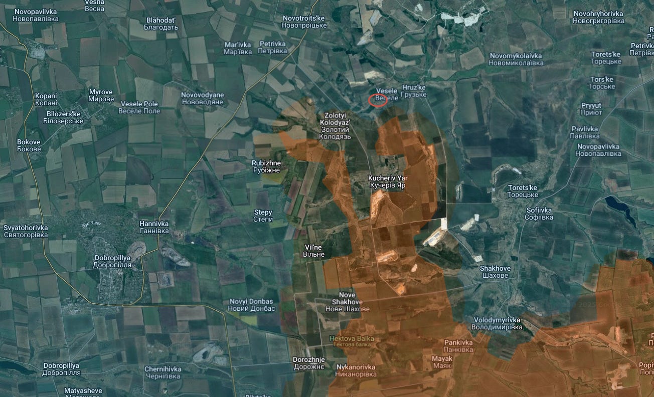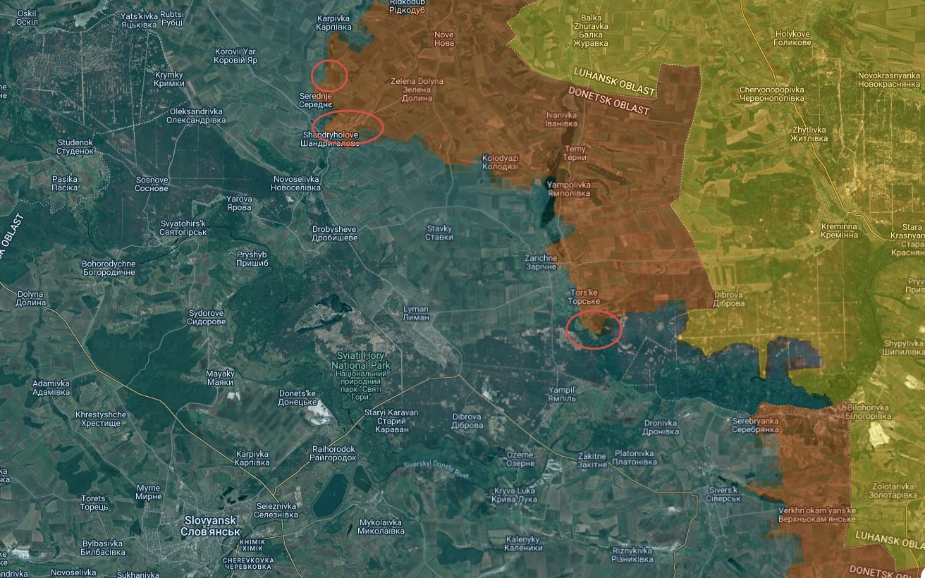 As can be seen, more territory was taken south of Torske, which itself was just captured two days ago, as well as further advances into neighboring Zarichne above.