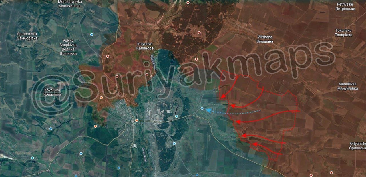 For instance, a major collapse in the Kupyansk area occurred today, with Ukrainian units withdrawing from this large swath of land around Petropavlovka, east of Kupyansk: