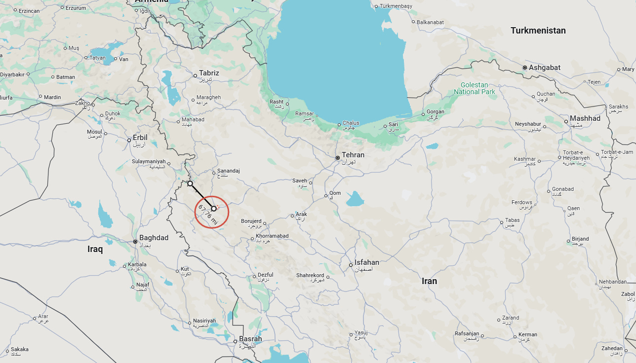 There has only been one single piece of footage I’ve personally seen that could indicate Israeli jets just barely skirted Iranian territory, wherein it looked like possible JDAMS were dropped on Kermanshah, which is just barely over 100km+ from the Iranian border: