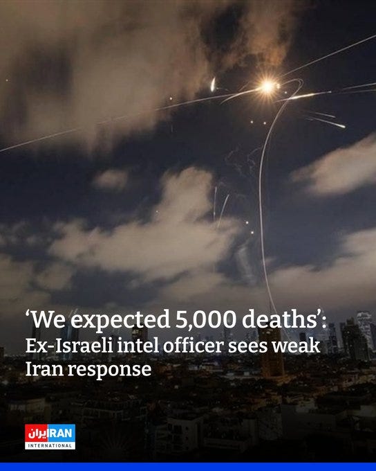 Why has Iran chosen this strategy? Because it’s the only one with a chance of success, as giving Israel a massive “shock and awe” campaign would merely play into its hands and give the Israelis exactly what they were looking for. One report indicated that Israel had prepared for 5,000+ Israeli casualties from the Iranian strikes and clearly did not expect Iran to instead choose a slow-broil method: