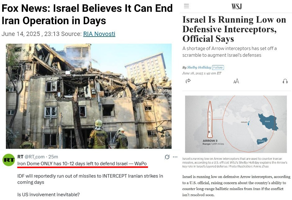 Israel needed a quick operation to disable Iran, and was likely counting on the US to enter the war. But this should be tempered with the fact that Israel does claim they have prepared for the potential of a long-running conflict, but presumably only under the total aegis of the US and the West completely backstopping them in every facet, particularly weapons, fuel, etc.