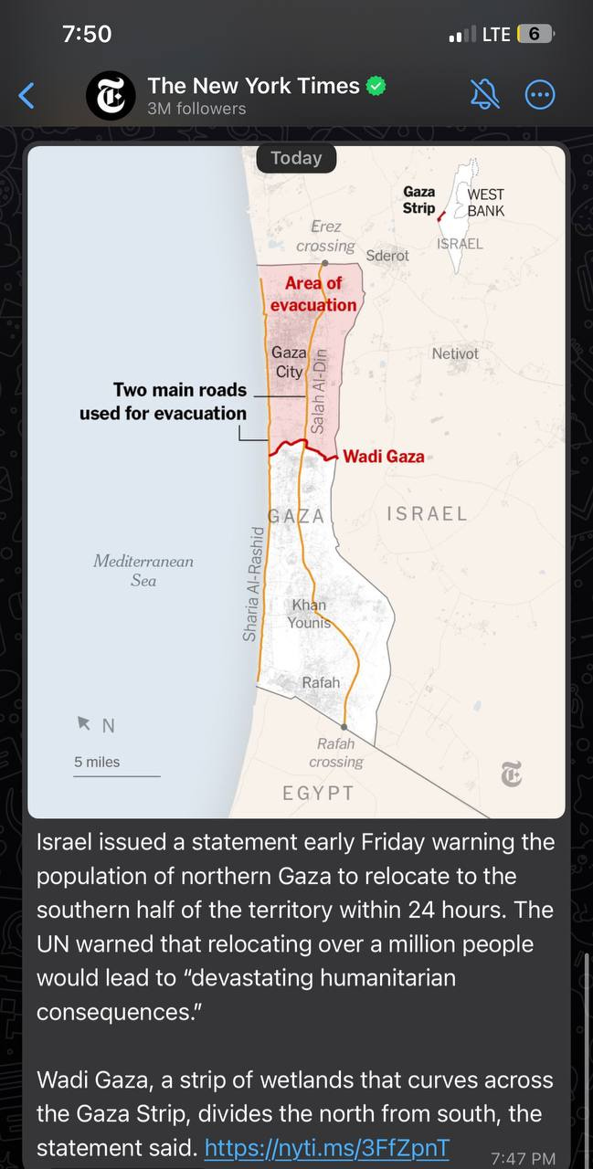They’ve declared their demand for all of northern Gaza to be cleared, with over 1.1 million Palestinians to head to the south half of Gaza: