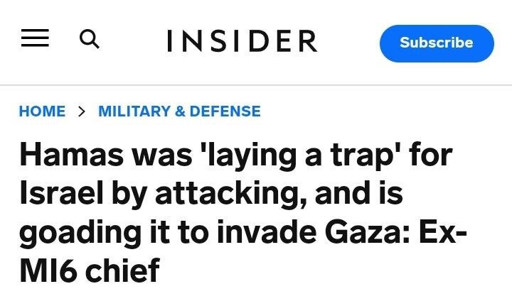 Attacks by the Hamas militant group were likely a ploy to lure Israel into a costly ground invasion of Gaza, the former head of Britain's MI6 spy agency said.