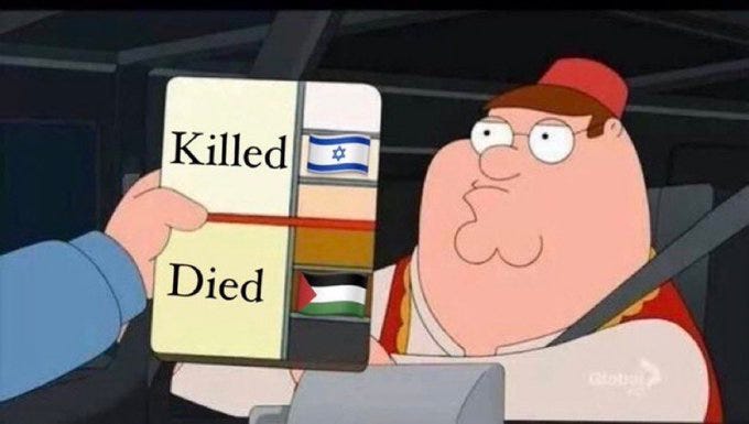 Of course that’s only a drop in the bucket of the indiscriminate slaughter of civilians we’ve seen from Israel thus far.