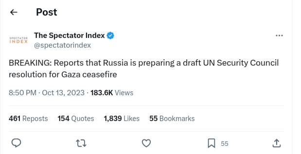 Russia is said to be drafting a seminal UNSC resolution for a ceasefire as well: