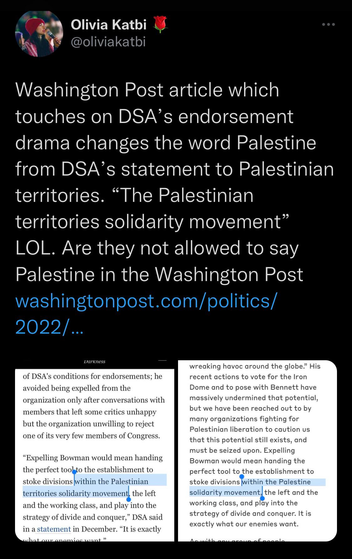 And they were caught doing that before in an even more egregious way, absurdly changing the Palestine Solidarity Movement into the Palestinian Territories Solidarity Movement: