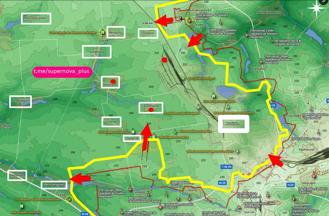 Note that the area circled in red is where Russian forces have begun pushing into. And note that there is no other road other than the one above leading out of Avdeevka.