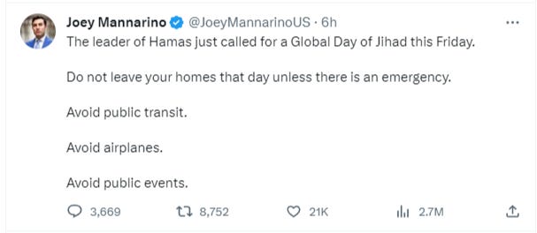 It follows what is claimed to be the cofounder of Hamas calling for a ‘day of rage’ at that time, and for people to take to the streets and carry out “jihad”.