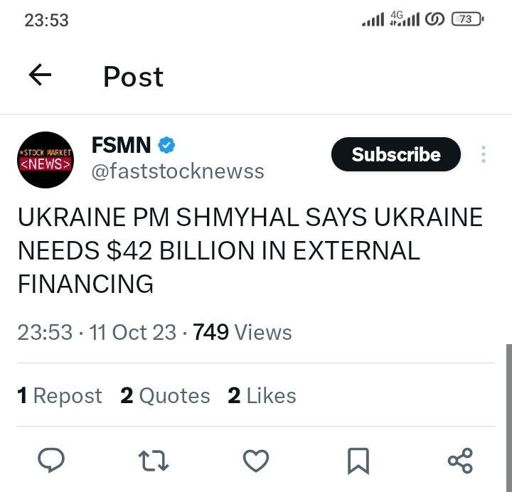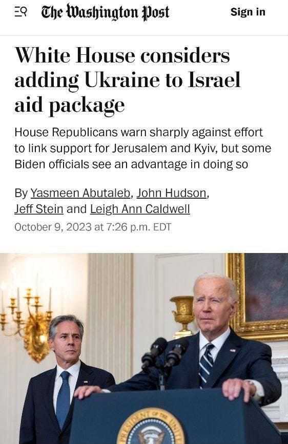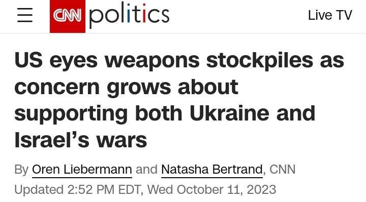 If Kirby’s “end of the rope” line is any indication, I’m not sure how much further aid sympathy can be drummed up for Ukraine now that Israel is in far more dire ‘need’. And with Zelensky now planning to visit Israel to “show solidarity”, things are bound to get very interesting over the coming weeks.