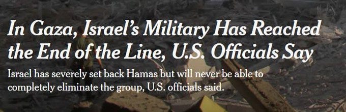 …a growing number of national security officials across the government said that the Israeli military had severely set back Hamas but would never be able to completely eliminate the group.