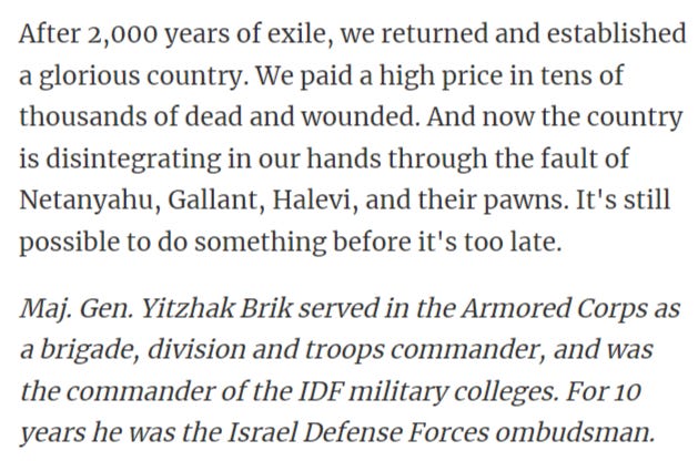 Yitzhak Brik has reportedly been called ‘The Prophet of Wrath’ in Israel for accurately predicting the Al-Aqsa Flood operation. Now, in an Oped for Haaretz, he accuses the Israeli government of ‘throwing dust in the eyes’ of the public by lying about their destruction of Hamas.