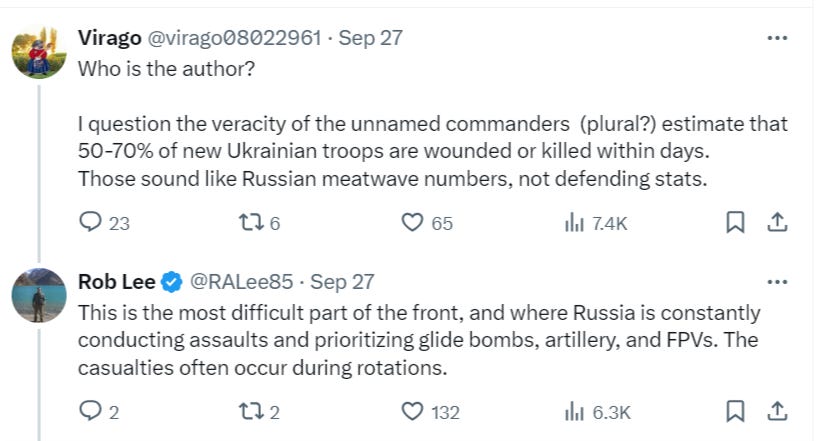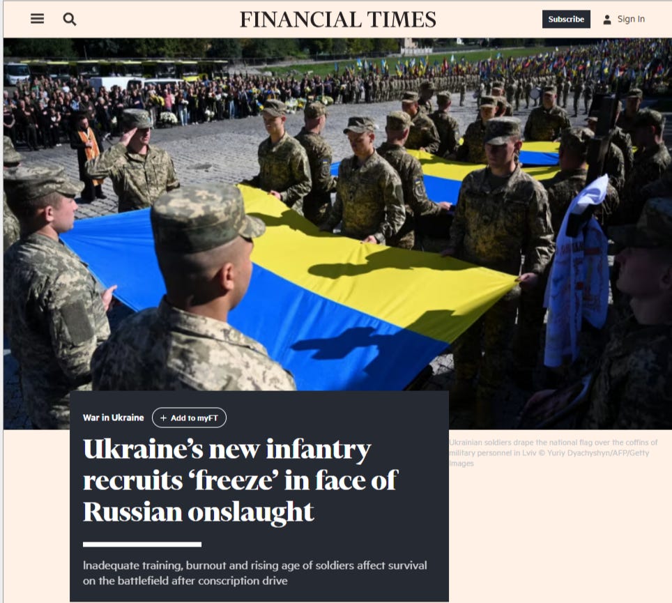Another recent report stated that the UK no longer receives any Ukrainians to train simply because they appear to be running out. This FT article corroborates training woes: