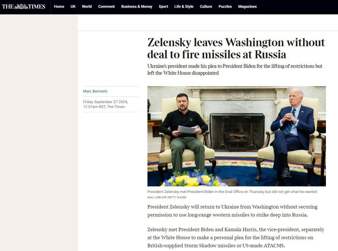 Biden and his entourage doubt Zelensky's "victory plan" and the correctness of the decision to invade the Kursk region, — Politico