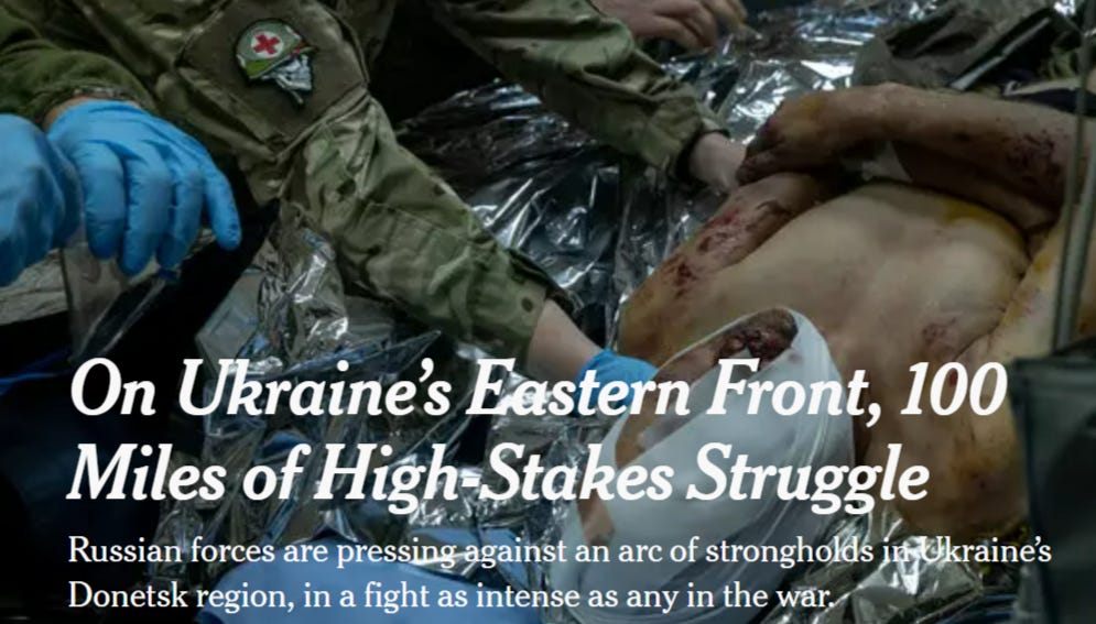 So, in a single small section of the front, Ukraine had 70 wounded in a single day, many of them heavily as the article goes on to describe. Multiply that by dozens of other sections of the front and it’s likely Ukraine is getting upwards of 1000 total casualties or more per day, with potentially 200-300 of them being dead, if not more. Though I believe that number ticks up greatly during more intense operations or offensives.