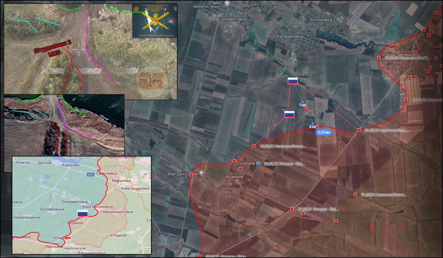 28.09.24 Novomikhaylovka - Katerinovka Active military operations in the Novomikhaylovka area. Attack of the Russian Armed Forces by motorized rifle units consisting of two assault groups. Assault on Ukrainian Armed Forces positions on the Vodyanoye-Katerinovka line. The Russian Armed Forces advanced 2 km westward and took up new positions south of Katerinovka. Geolocation: 47.858762 37.342112 in post below