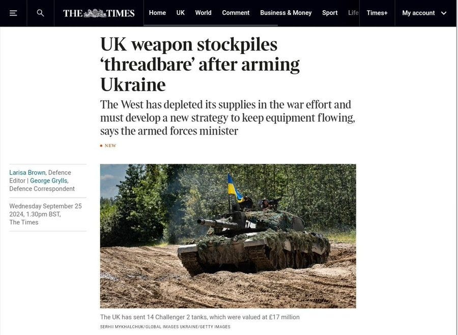 The intel agencies’ report also confirms that NATO’s weapons stocks are dwindling precariously fast: