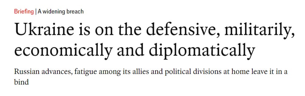 Back in Ukraine, after the comedown of the General Assembly ‘high’, Western media has returned to gloomy forecasts of Zelensky’s outlook: