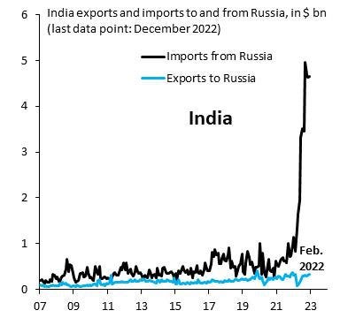 One of Yellen’s main bragging points was that the U.S. sanctions have effectively squelched Russia’s ability to supply weapons to its army. But there are a number of recent charts and data-points that show how successfully Russia has subverted not only the sanctions in general, with substitution towards the east, but the so-called ability to supply weapons.