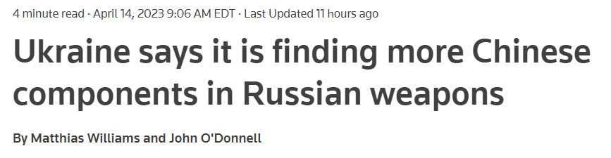 This new Reuters article has Ukraine bemoaning how many new Russian weapons systems are now found with Chinese parts in them, rather than Western parts: