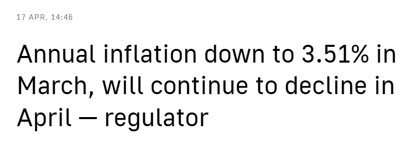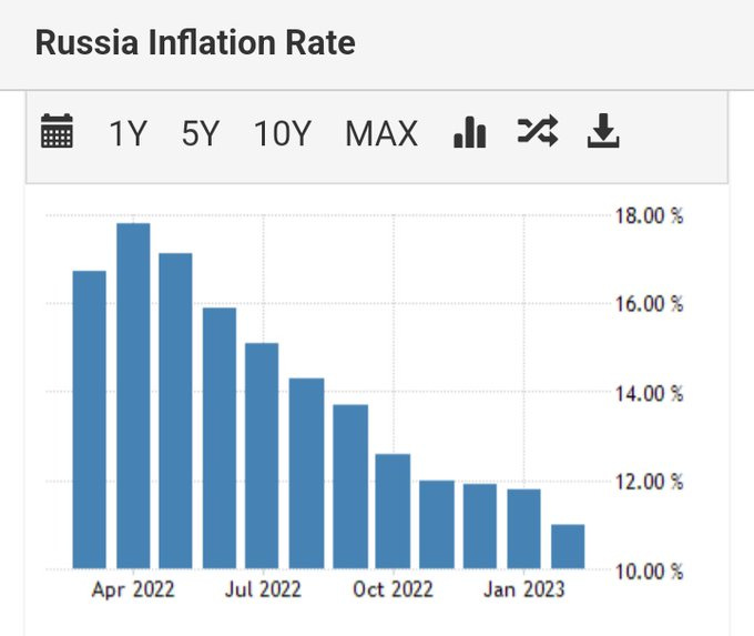 And today’s biggest headline is that Russia’s inflation has staggeringly dropped down to ~3% from a recent 11%, and a high of nearly 18%: