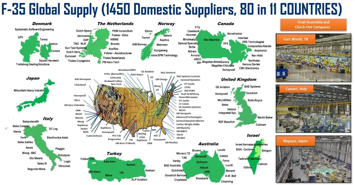 And as I’ve mentioned in a previous article, for those who believe having Chinese parts in Russia’s weapons is such a huge weakness, please tell me what it means for the U.S. military that the F-35 supply chain looks like this:
