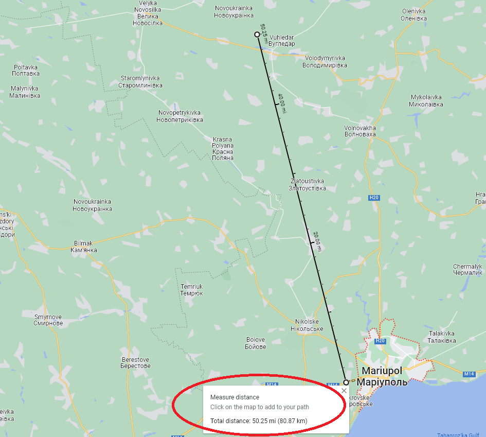 Some have stated it had to be GLSDB because nothing else could have reached Mariupol from Ukrainian territory. But it can be seen here that even Ukrainian-occupied Ugledar is a mere 80km from Mariupol: