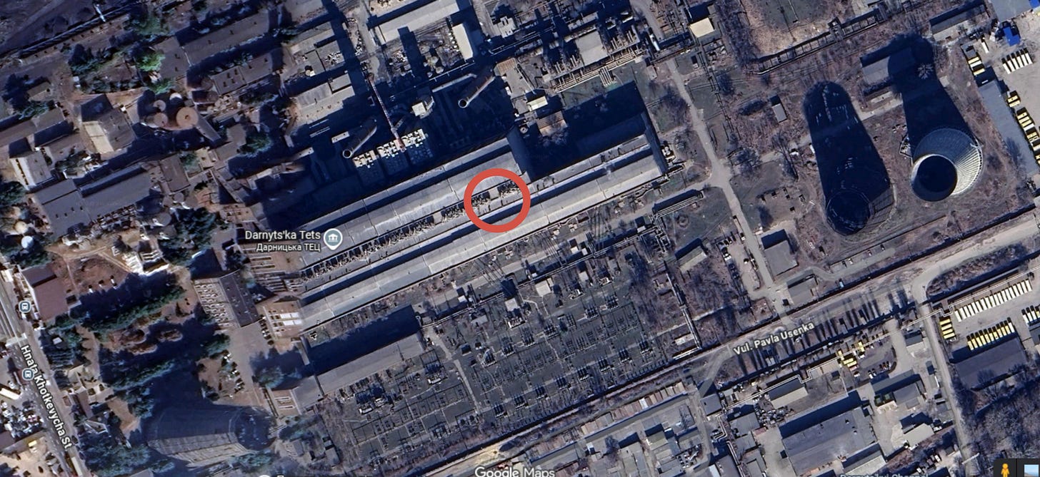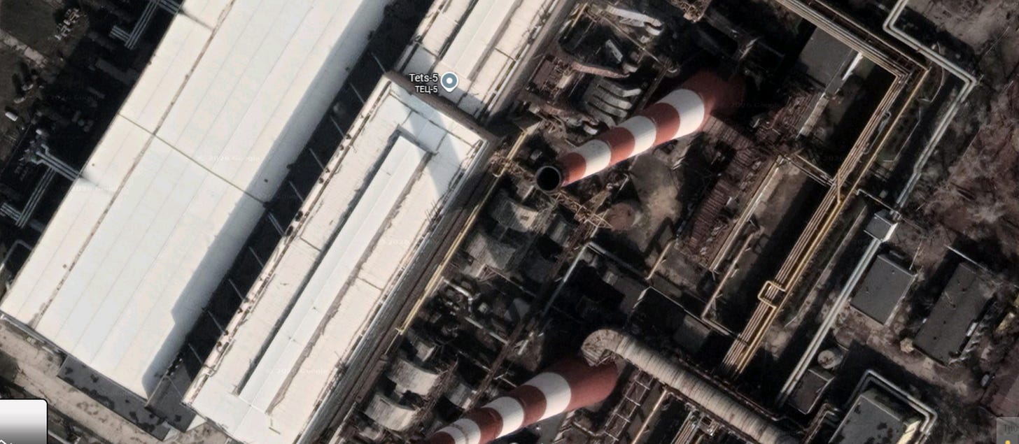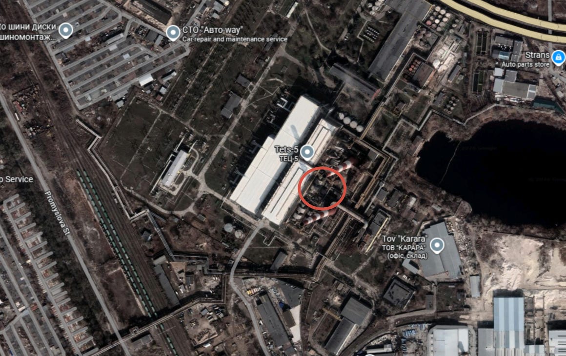 Turning over to Kiev, we see the TPP-5 (Thermal Power Plant 5) was struck reportedly by Iskanders at 50.39325474093848, 30.56989136578839 geolocation: