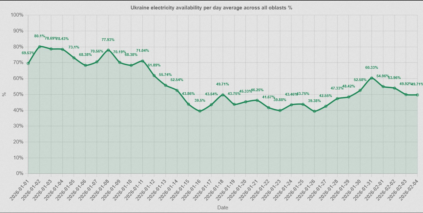 Some even argue that despite the massive Russian strikes since the start of the new year, Ukraine’s overall power continues to hold up decently well, and is even being restored—at least going by this chart: