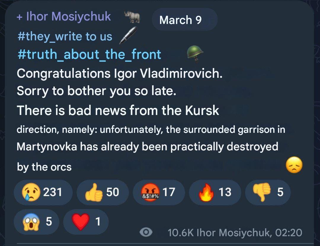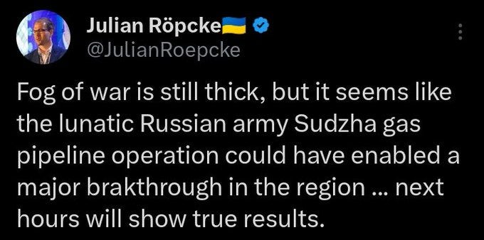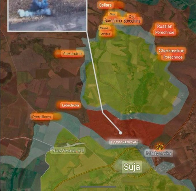 Other sources claim that the Martinovka area just north of Sudzha was completely connected to Lebedevka, creating a cauldron for everything north of there: