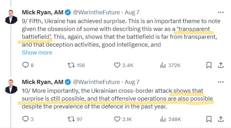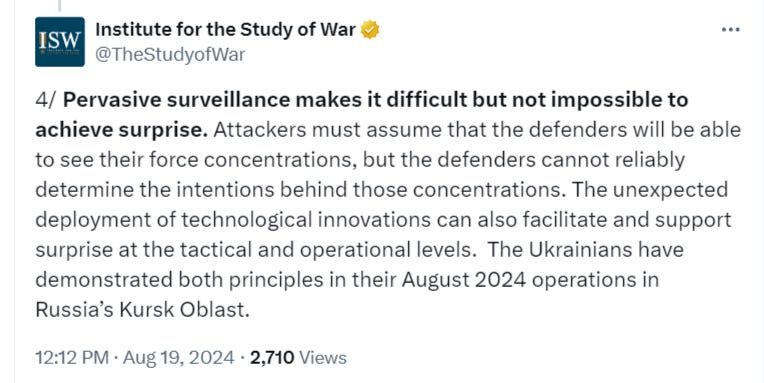 One of those larger points is that ISR is not impossible to overcome—which you can see they tied into the Kursk operation as evidence of their findings: