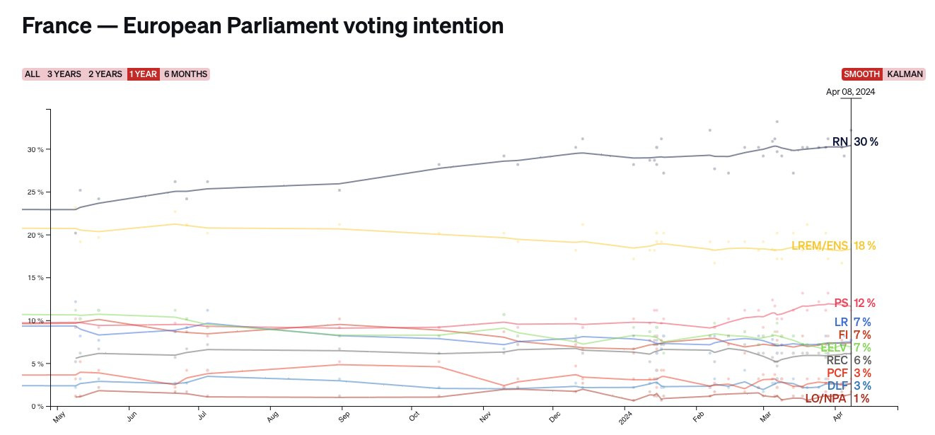The Colonel may be right, as the outlook does not appear favorable for Macron and his party for the upcoming European Parliament elections: