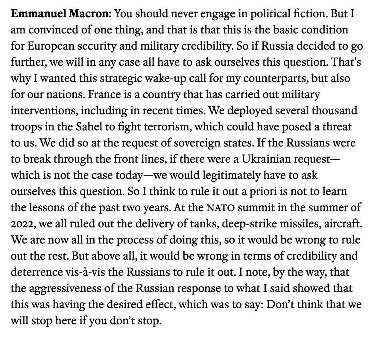 In the latest Economist piece, Macron again rekindles bravado-driven boasts of sending troops: