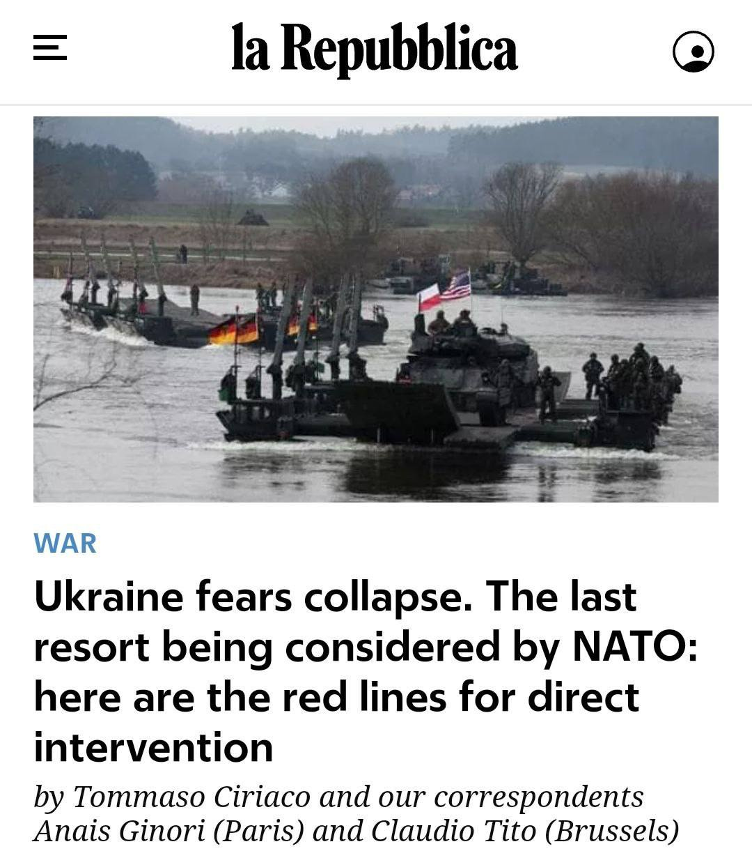 NATO, against the backdrop of Western concern about the failures of the Armed Forces of Ukraine at the front, “in a very confidential form,” “established” two “red lines” for itself, which could be followed by direct intervention of the alliance in the conflict, writes the Italian newspaper Repubblica.