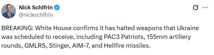 Either way, it has now come to pass—again, as predicted long ago—that neither the far flung European promises of mass ammo production nor the slightly more believable American ones have borne out. And on top of that, whatever pitiful amount the US is producing, is now presumably getting cut down even further based on today’s reports of aid-halts from the White House and Pentagon. Russia, in the meantime, continues pumping out an estimated 250-350k shells per month, with more coming from North Korea.