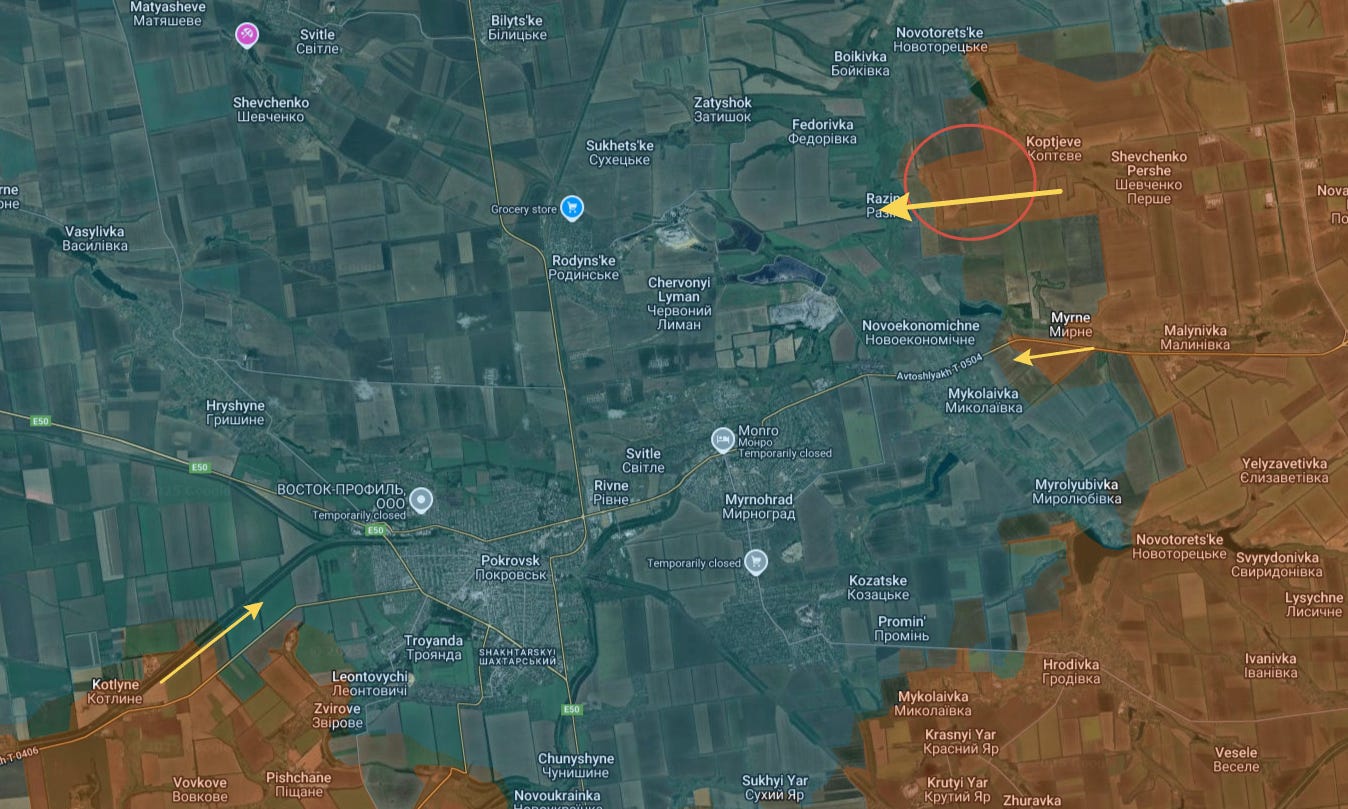 There were many other small advances and territorial gains between here and Pokrovsk further northeast—too many to list, so for now we’re sticking to the larger settlement captures.