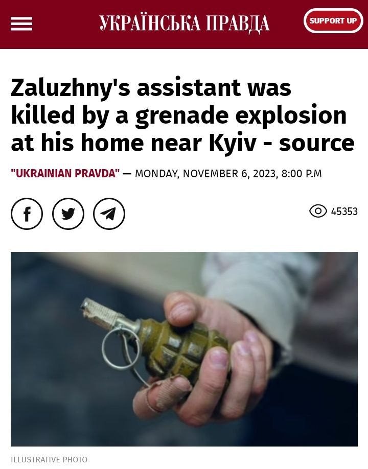 Zaluzhny’s personal right hand man was blown up by a grenade delivered to him via birthday present. Official explanations seek to downplay it as an innocent ‘accident.’ It was the same excuse of ‘accidental horseplay’ implied by Putin to have been responsible for Prigozhin’s death. Naturally, both explanations are 100% phony.