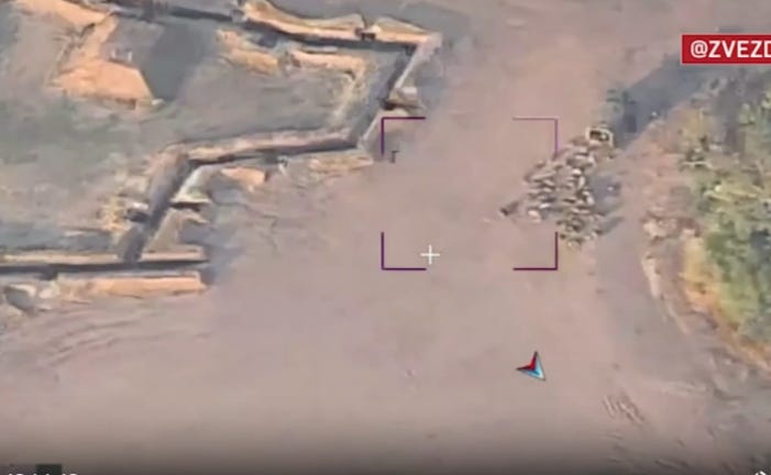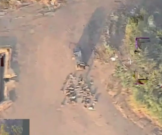 Lastly, to give an idea of Ukraine’s Kursk losses, here’s a brief video showing a road of death full of NATO vehicles, followed by another video of many of them being destroyed—you can see the characteristic white triangle belonging to the Ukrainian northern Kursk grouping on most of them.