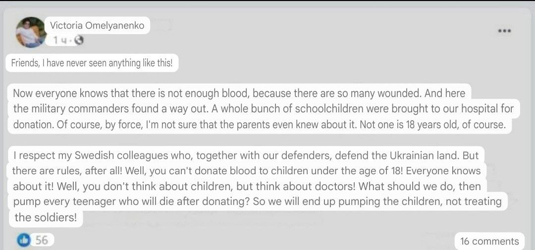 In fact a Ukrainian medic was livid that underage children were being coerced to supply blood: