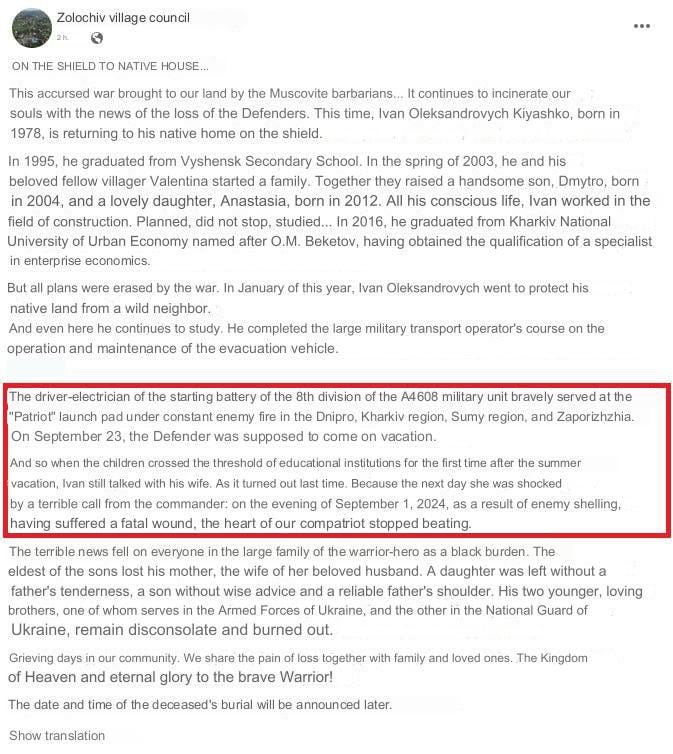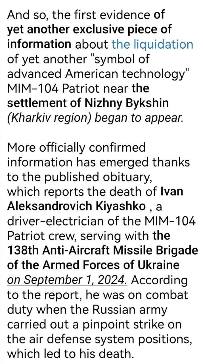 Ukrainian air defense suffered two significant losses in personnel over the previous 48 hours. Yesterday the death of MIM-104 Patriot air defense system operator Ivan Kiyashko from the 138th anti-aircraft missile brigade was reported in the Kharkov region, today information emerged about the death of Colonel Viktor Polyvyany, who previously commanded the 160th Anti-Aircraft Missile Brigade which is armed with S-300PS.