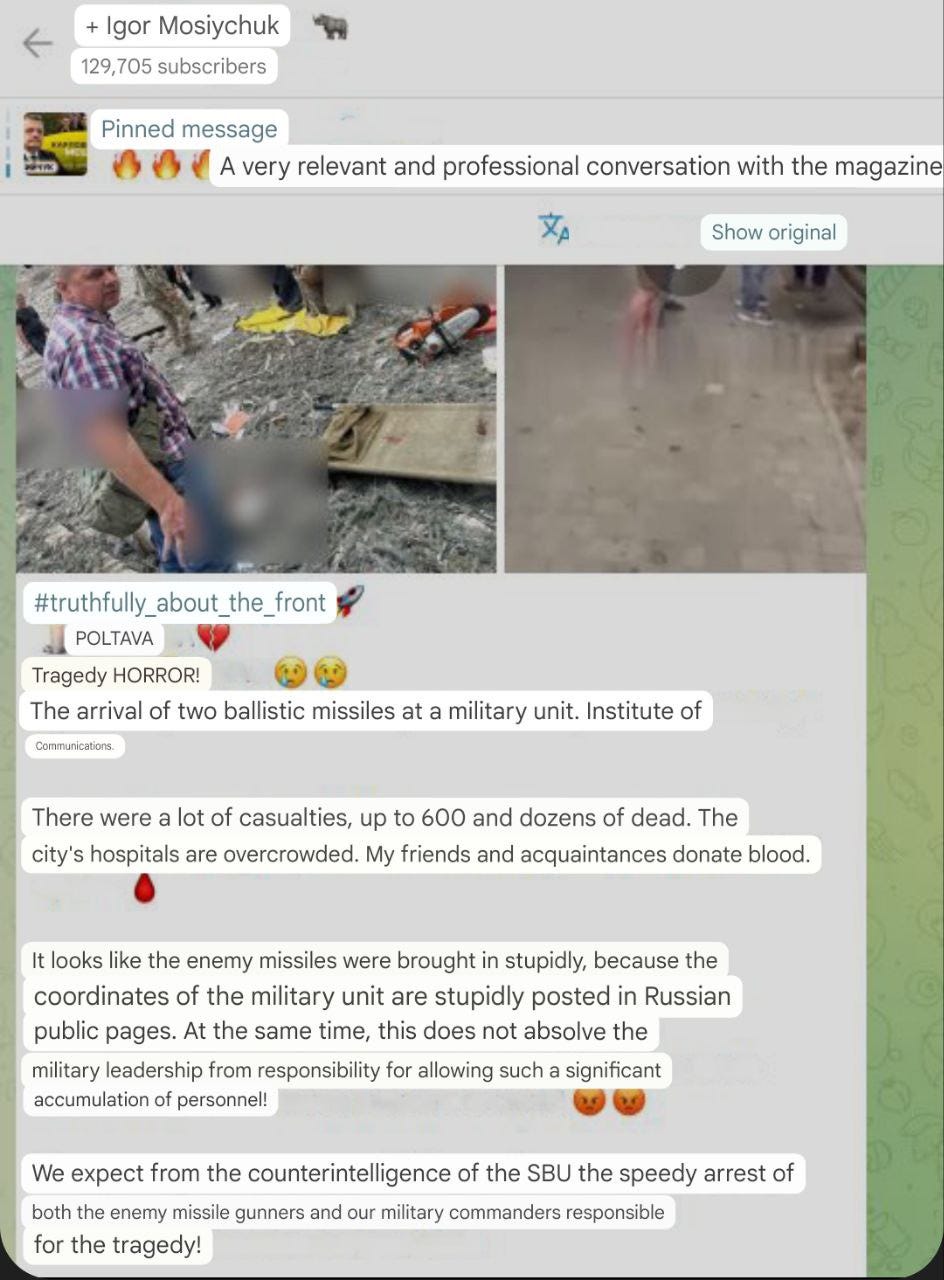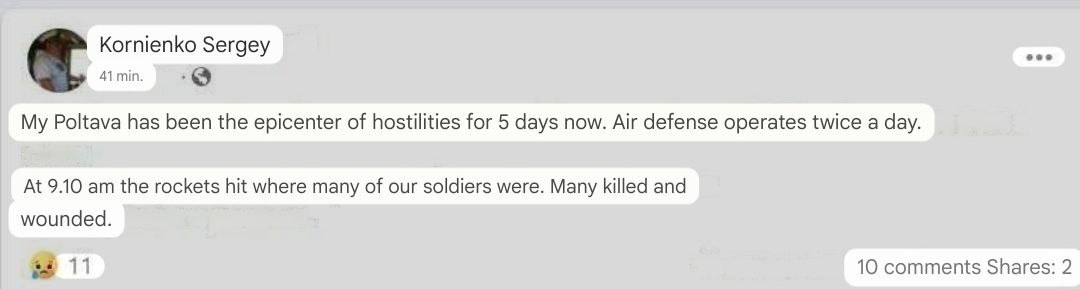 The direct reports from Ukrainians on the ground about the Poltava strike’s losses are staggering.