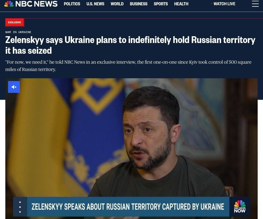 On that note, Zelensky just told MSNBC that he plans to hold Russian territory indefinitely ‘for now’.