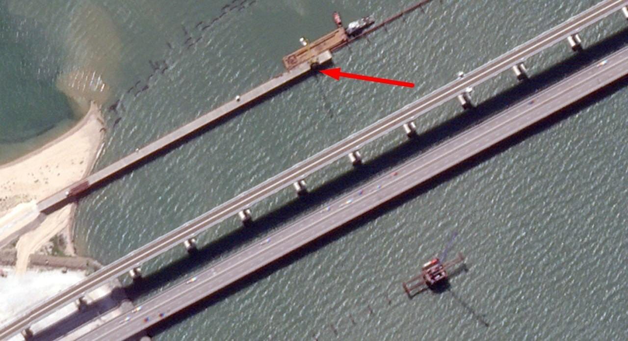 Some have speculated it’s a redundant pontoon in case the bridge is hit, or simply a permanent seawall to block naval drones from attacking the bridge, given that previously Russia relied on more provisional solutions like sunken barges and mine nets.